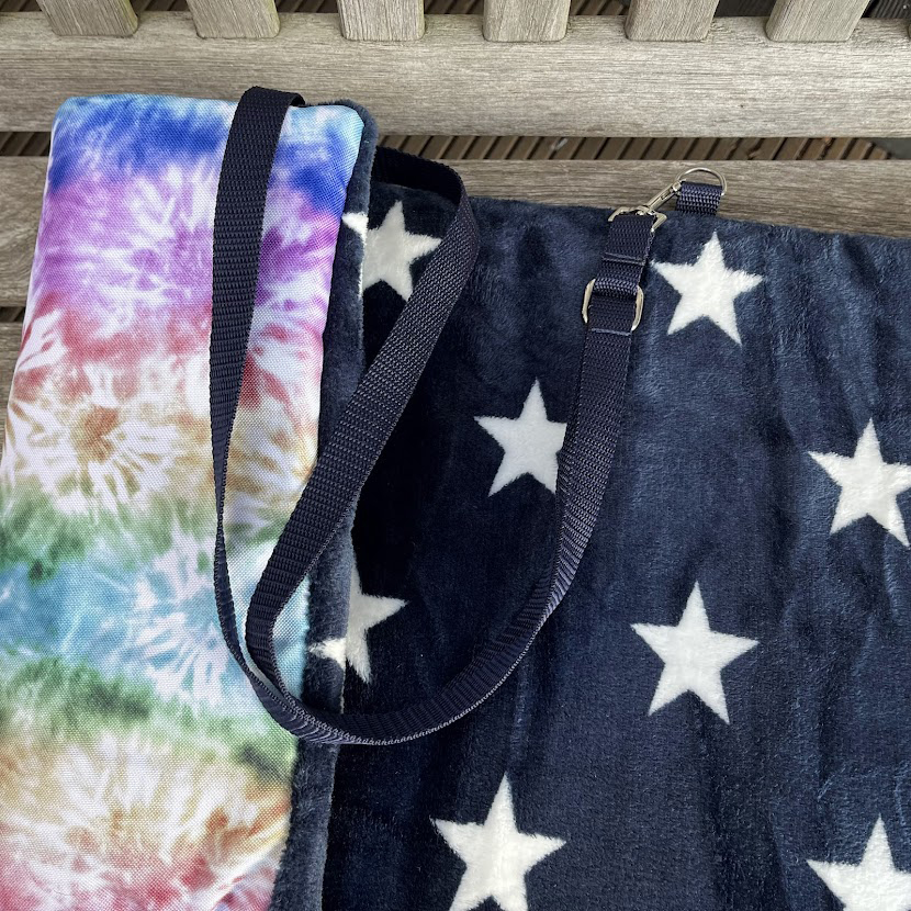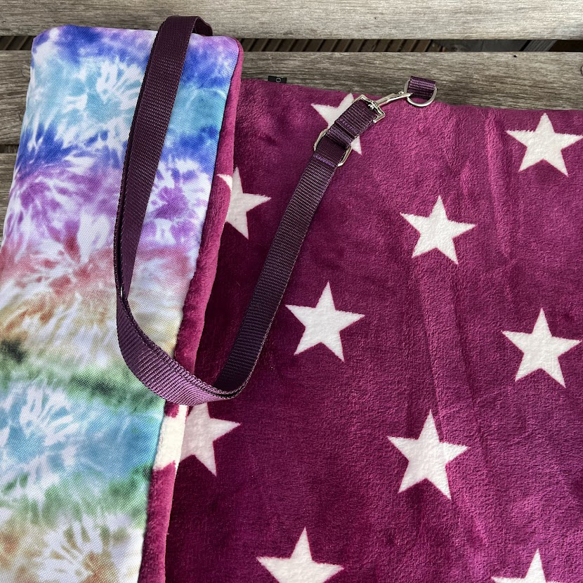 Die Decke ist mit ca. 4 cm dicker Volumenwatte gepolstert, die fest mit dem Stoff vernäht ist. So entsteht eine angenehm weiche, stabile Liegefläche – egal ob beim Training, auf Prüfungen, beim Picknick oder auf Reisen.